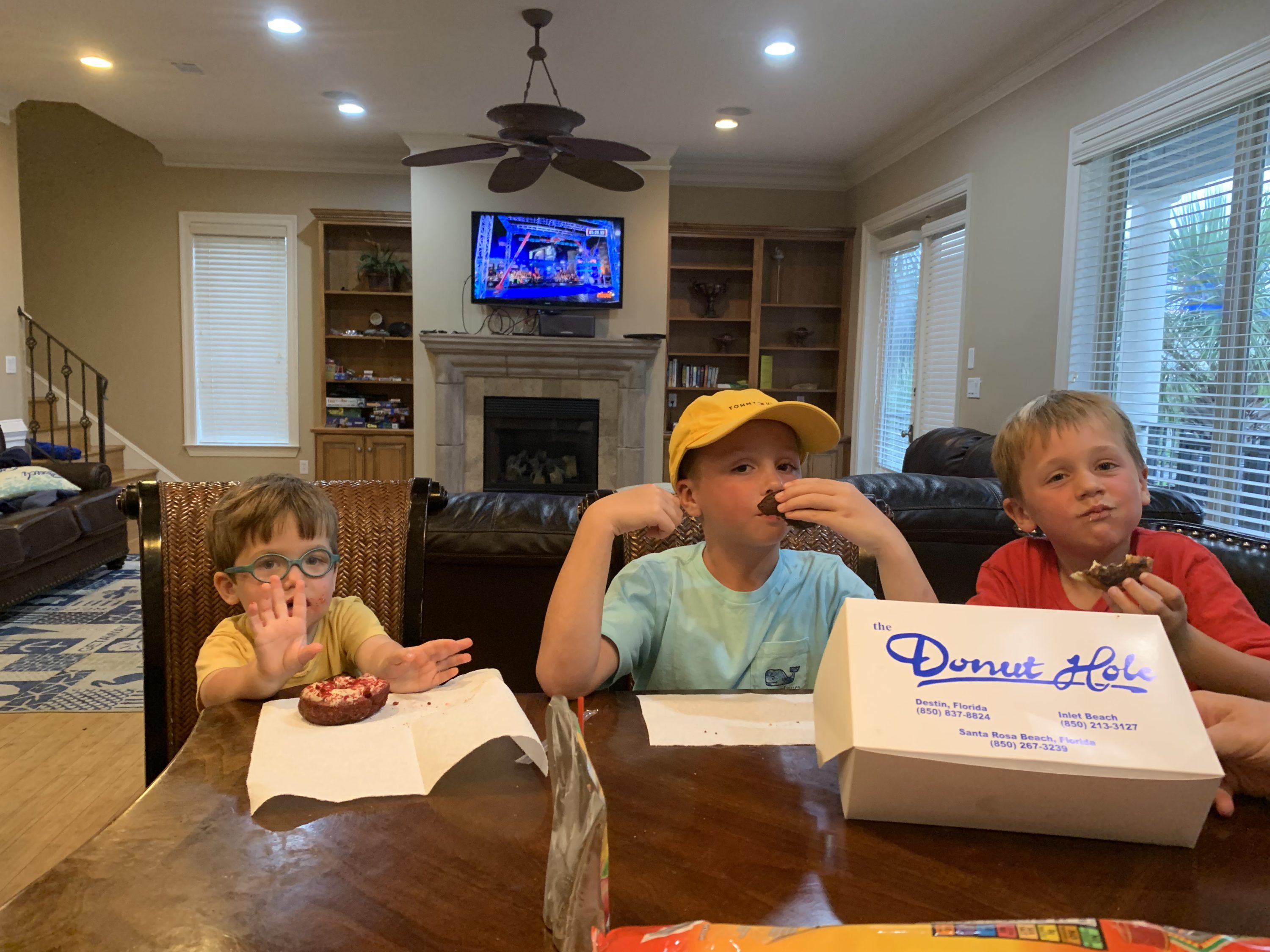 Bubble bath! Popsicles! Cousin sleepover Lost a tooth in the pool! Dinner out Drinks by the beach Ice cream! Itching for mini golf Hot but fun Littlest golfer Pool volleyball Poolside drinks Snacks and TV Date night Yummy dinner out Had to hit a pancake place Came home with donuts Everyone enjoyed these Happy birthday, Ryan! Got sung to twice Dinner by the water again Cornhole Beach trucks All worn out