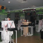 Except for the horrible, horrible club music, it was entertaining – if for no other reason to see a middle eastern interpretation of my favorite holiday. Apparently someone told them that “R.I.P.” is a Halloween word because because they had it written on everything!! Table clothes, hats, pumpkins…. Our favorite was the bartenders’ costumes – black trash bags as vests, some fake mustaches and a New Year’s Eve party hat with “RIP” handwritten on the front. Someone made a trip to the only party store in the city because they had a few wall hangings, pumpkin lights and that cheesy spider web that you stretch out over everything. The dried leaves all over the floor? I think that was a custom decoration! LOL But they tried and we certainly appreciated that!