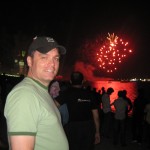 The evening’s festivities concluded with a beautiful fireworks display over the water. The small building to the left of the fireworks (the one with the lighting display) is the Emirates Palace Hotel. The tower to the far right is Marina Mall.