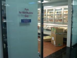 Picture Our BBQ hopes are still alive! Posted by Brian on September 23, 2010 During our first trip to the nearby supermarket, we happened upon this room in the back of the store. We felt a little dirty going in, but its amazing how some sweet pig can wash away all that guilt….