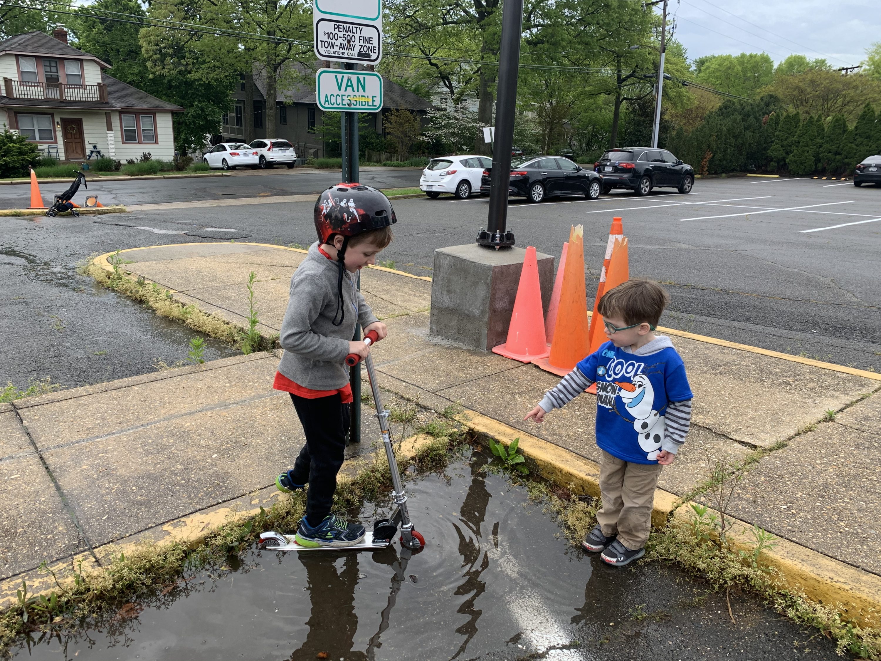 Being stuck at home can make you appreciate the little things…like puddles. What began as a tentative toe dip, emerged into an all-out splash fest over days. Warm showers were needed once we got home, but it was all worth it!